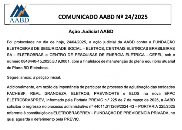 24/04/25 - Ação Judicial em defesa do Plano BD Eletrobras